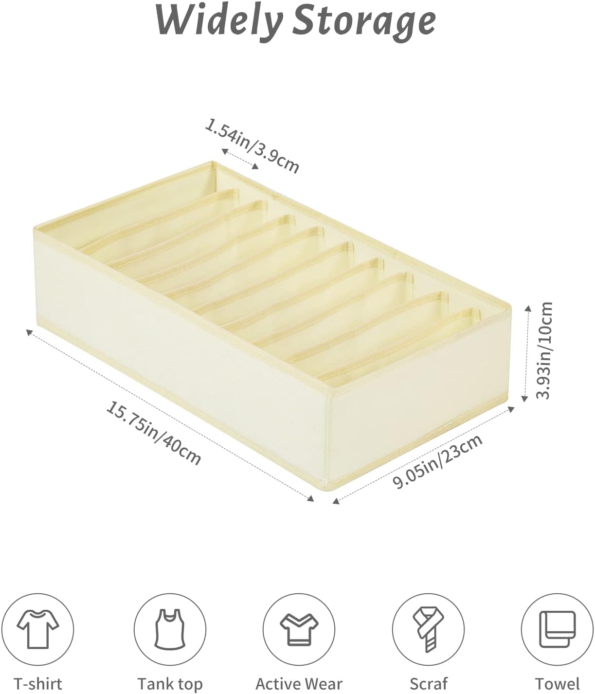 - 【Multifunctional】Our tshirt organizer can fit our THIN t-shirts, leggings, socks, silk scarves, and other SMALL clothes. Clothes organizer for closet can be placed in big drawers(Measure your drawer when purchasing since it's 15.75 in. in length), closets, wardrobes, cabinets, and other places. Please kindly check your drawer's size and fold your clothes to a suitable size to fit the clothing organizer.