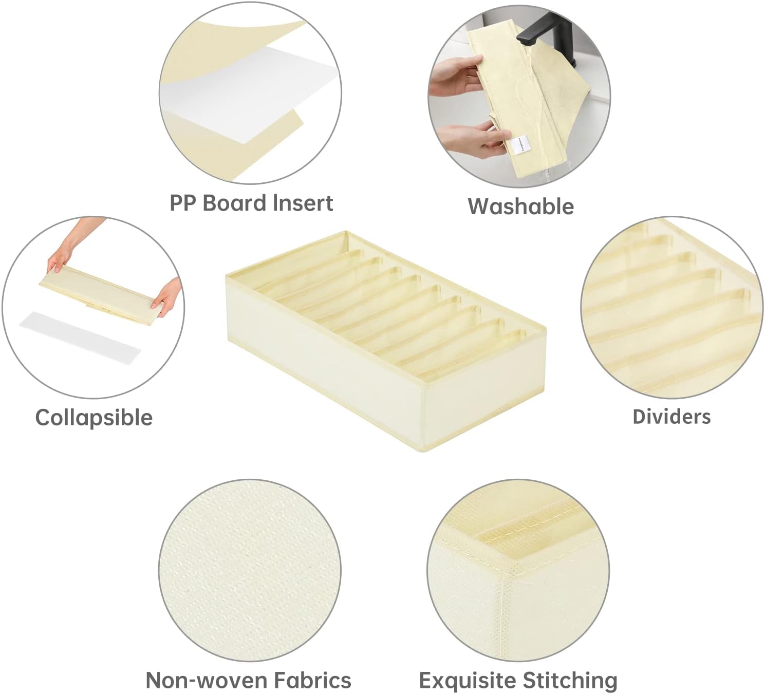 - 【Premium Material】Clothes drawer organizer is made of non-woven fabric with delicate stitching, which is durable and not easy to fade. And the PP board insert on four sides is a great addition to the product. Compared with the old version, our drawer organizer for clothing can keep shape when empty.