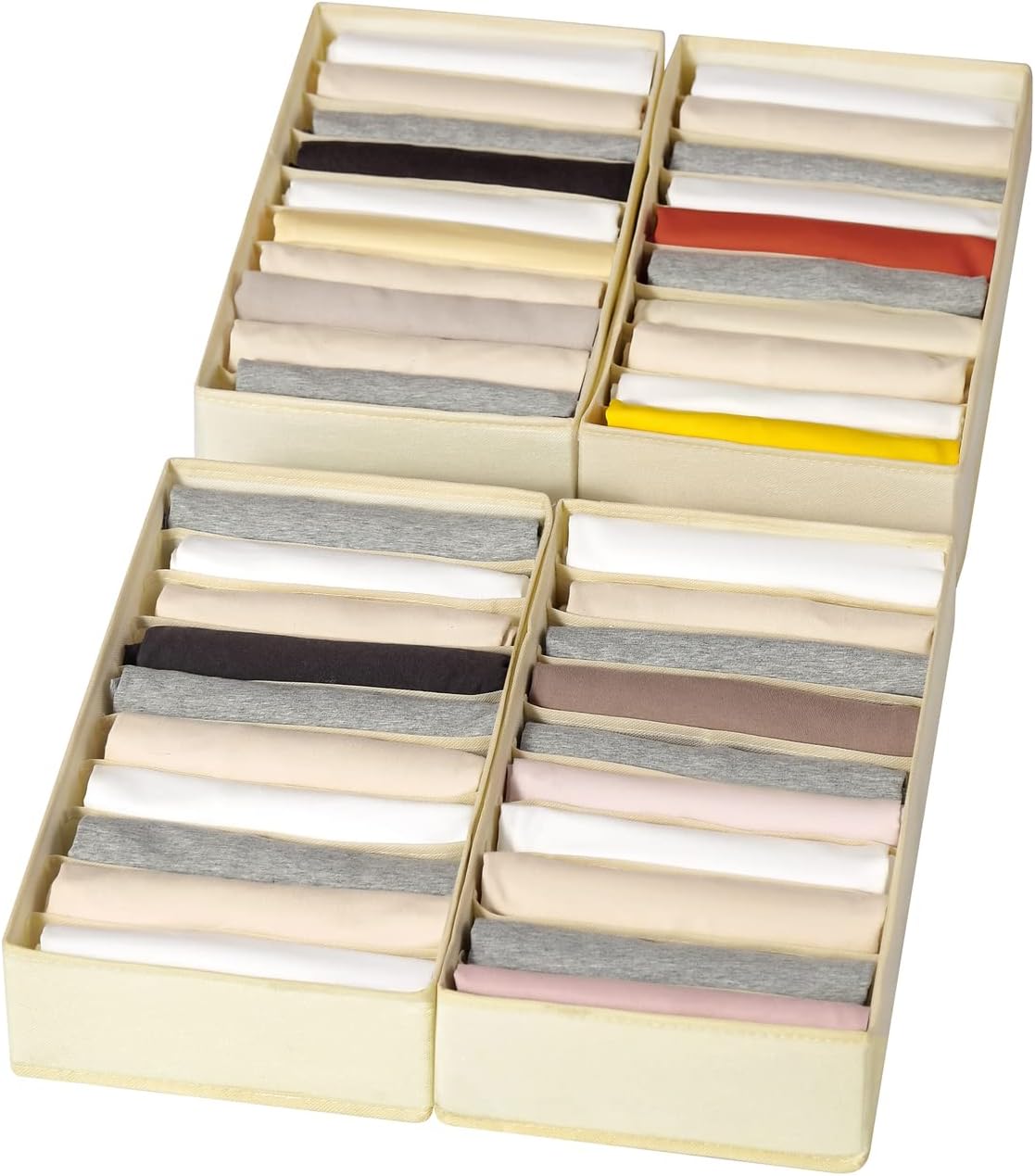 4 Packs T-shirt Drawer Organizers for Clothing,10 Grids Compartment Wardrobe Storage Box, Washable Clothes Organizer for Folded Clothes, T-shirt, Legging-Beige