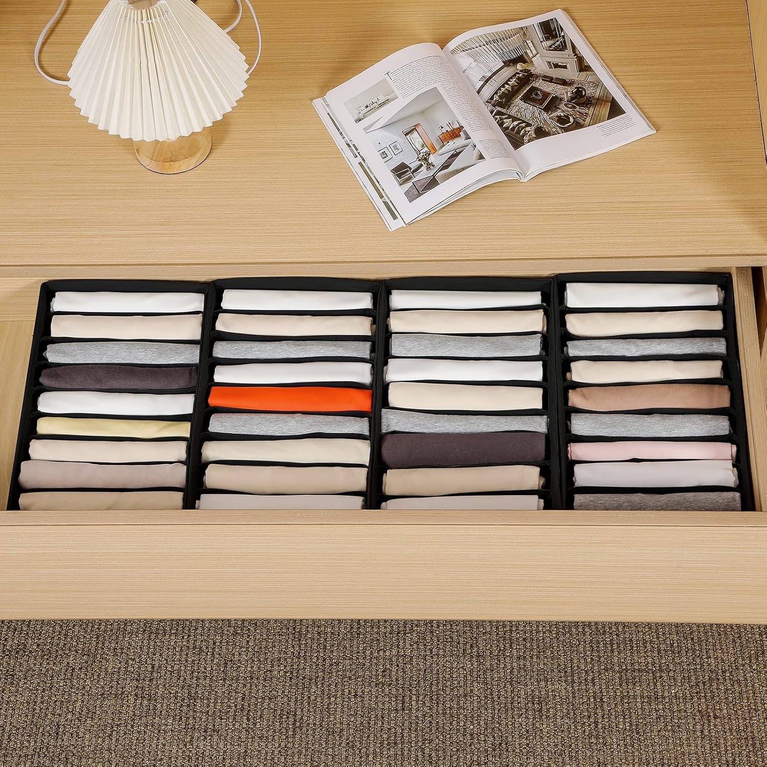 4 Packs T-shirt Drawer Organizers for Clothing,10 Grids Compartment Wardrobe Storage Box, Washable Clothes Organizer for Folded Clothes, T-shirt, Legging-Black
