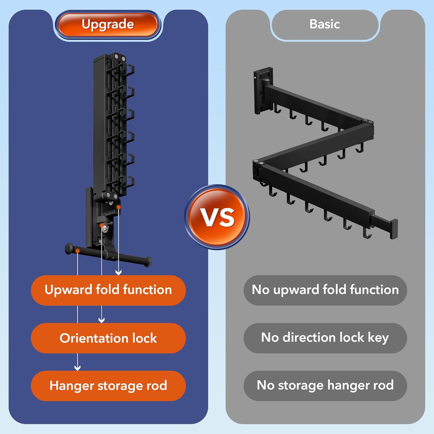 Drying Rack Clothing, Retractable Clothes Drying Rack,Wall Mounted Laundry Rack, Laundry Drying Rack Wall Mount,Collapsible Clothes Rack,can Fold Upward & Left & Right,Black Color