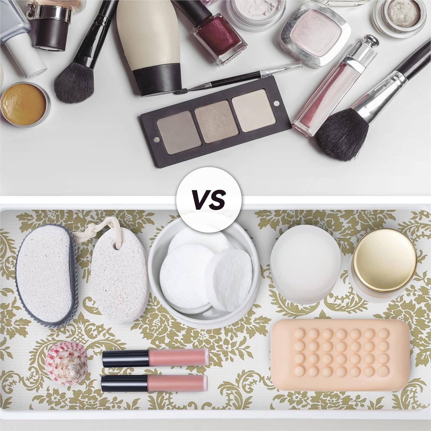 - SHELF LINER: Unique drawer liner design makes you stand out from the crowd of drawer liners. Made from premium thickened material, these non-adhesive shelf anddrawer liners are durable, tear-resistant, and reusable.