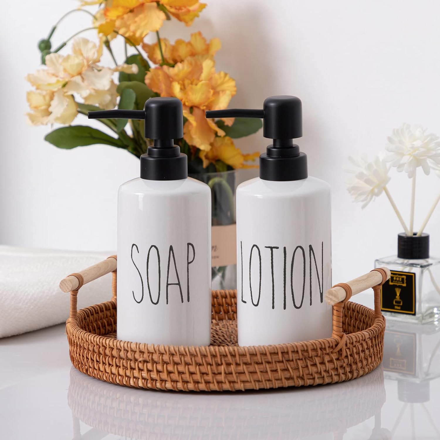 FE Soap Dispenser, 10oz Ceramic Liquid Soap Dispenser for Bathroom Countertop with Plastic Pump(SOAP)