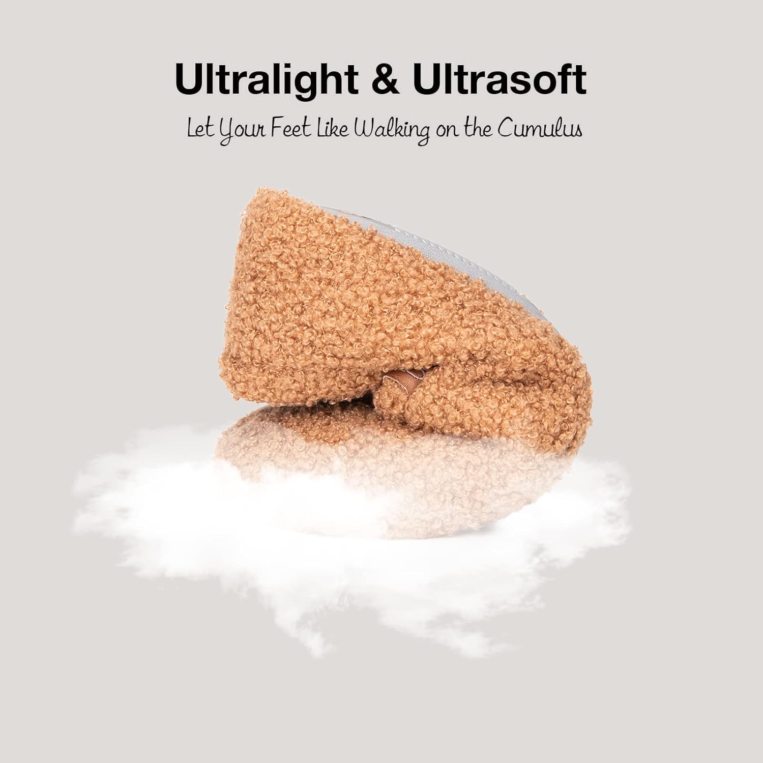 HomeTop Women's Fuzzy Curly Fur Memory Foam Loafer Slippers with Polar Fleece Lining