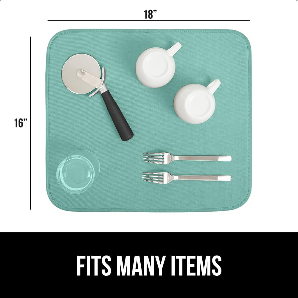 GORILLA GRIP Ultra Water Absorbent Microfiber Dish Drying Mat, Quick Dry Thick Mesh, Slip Resistant Pad for Sink Dishes or Under Rack, Kitchen Counter Accessories, 16x18, Machine Wash Mats, Mint