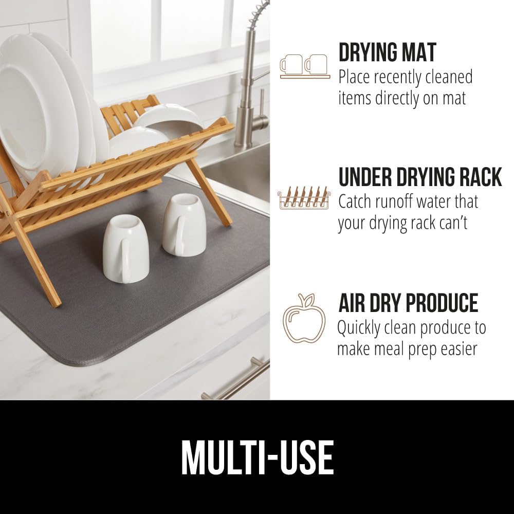 GORILLA GRIP Ultra Water Absorbent Microfiber Dish Drying Mat, Quick Dry Thick Mesh, Slip Resistant Pad for Sink Dishes or Under Rack, Kitchen Counter Accessories, 16x18, Machine Wash Mats, Gray