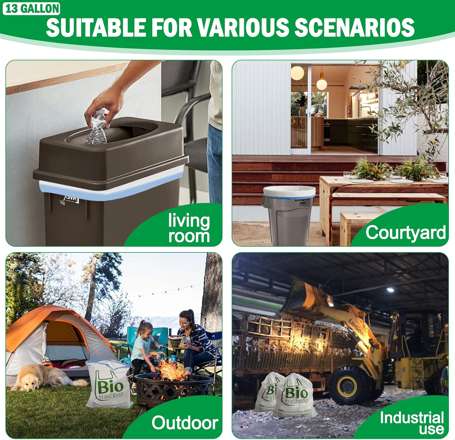 - Durable Compost Bags: Trash bags are durable, non-toxic and easy to use. Use as kitchen garbage bags are stretchable to accommodate oversized loads without puncturing, leaking or tearing.