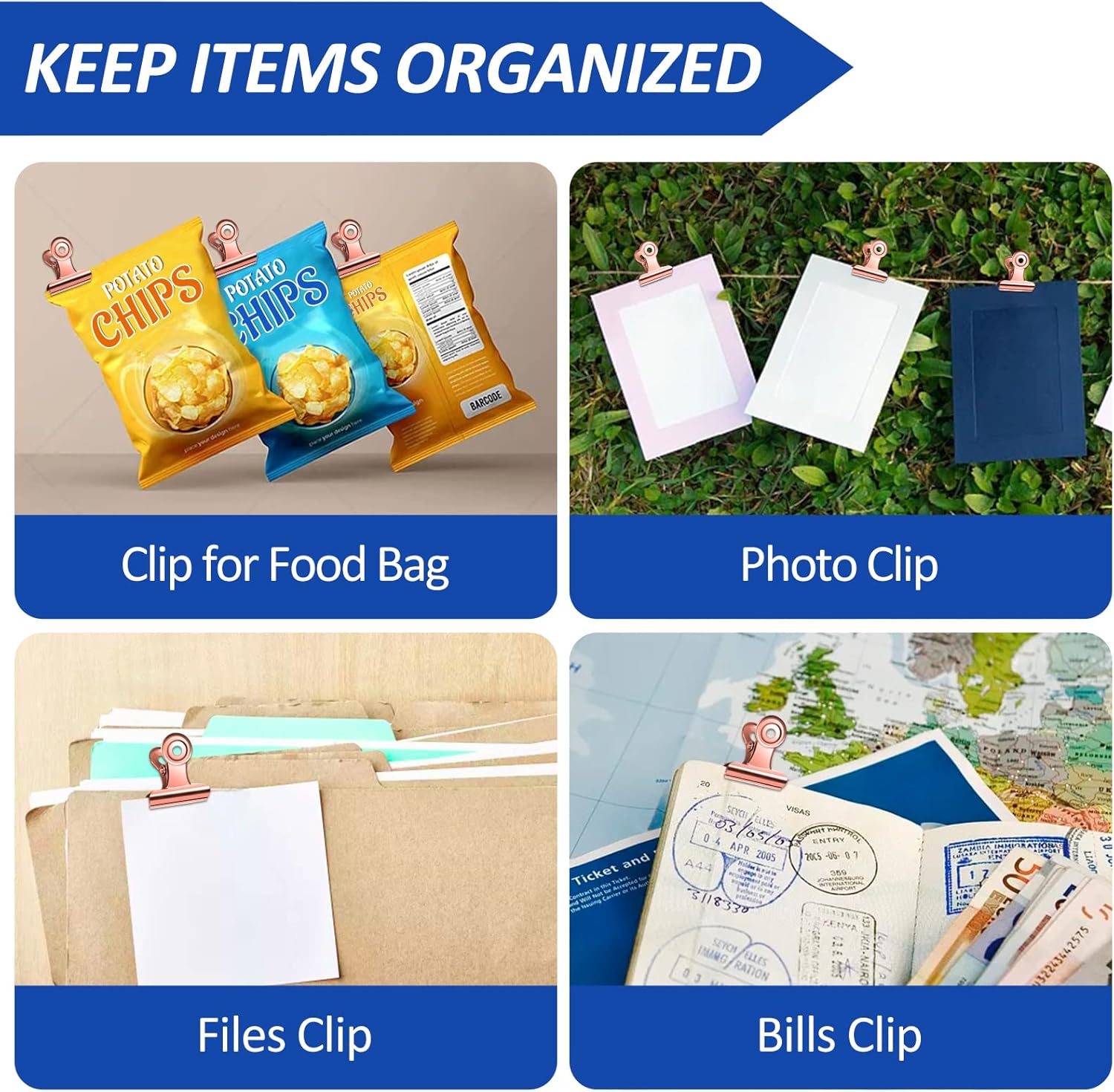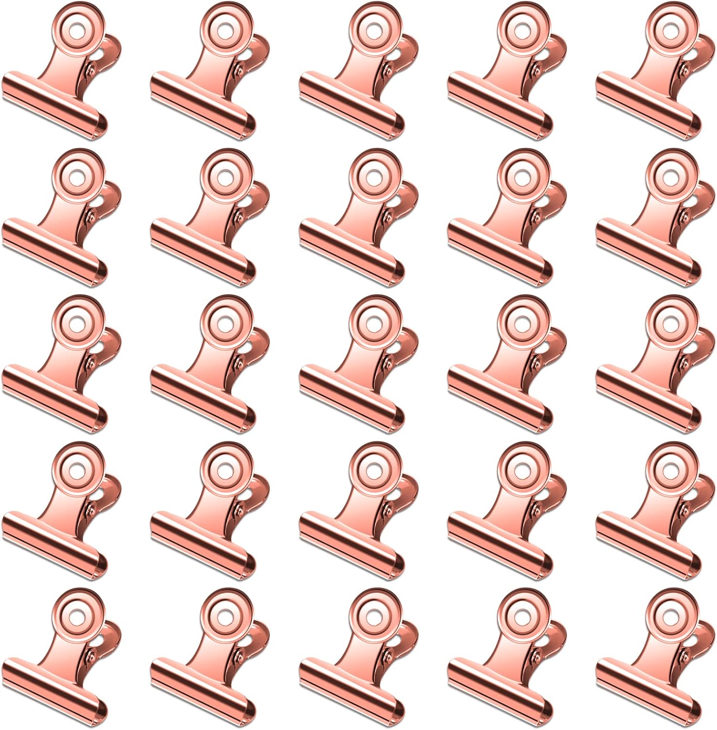 - Size: Each small hinge clip is 0.87 inch wide. Come with 30pcs rose gold bull clips, compact and portable, easy operation and quick clamping