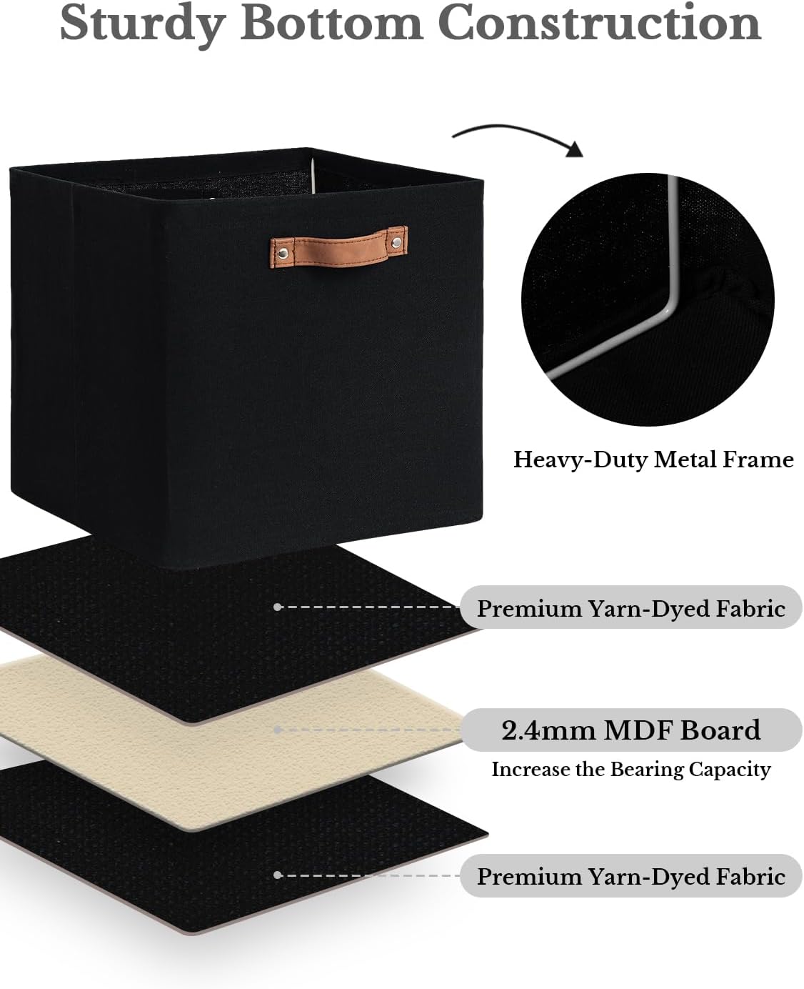 StorageWorks 13x13 Inches Storage Cube, Fabric Storage Bins with PU Handles, Collapsible Organizer Baskets for Closet, Black, 4-Pack