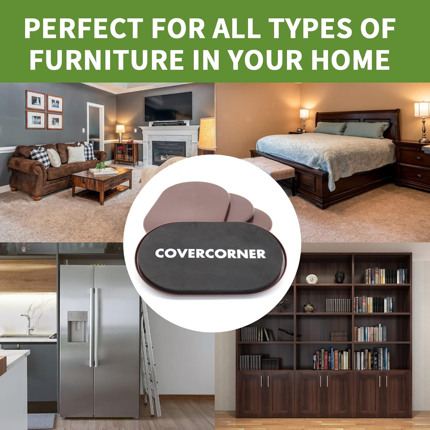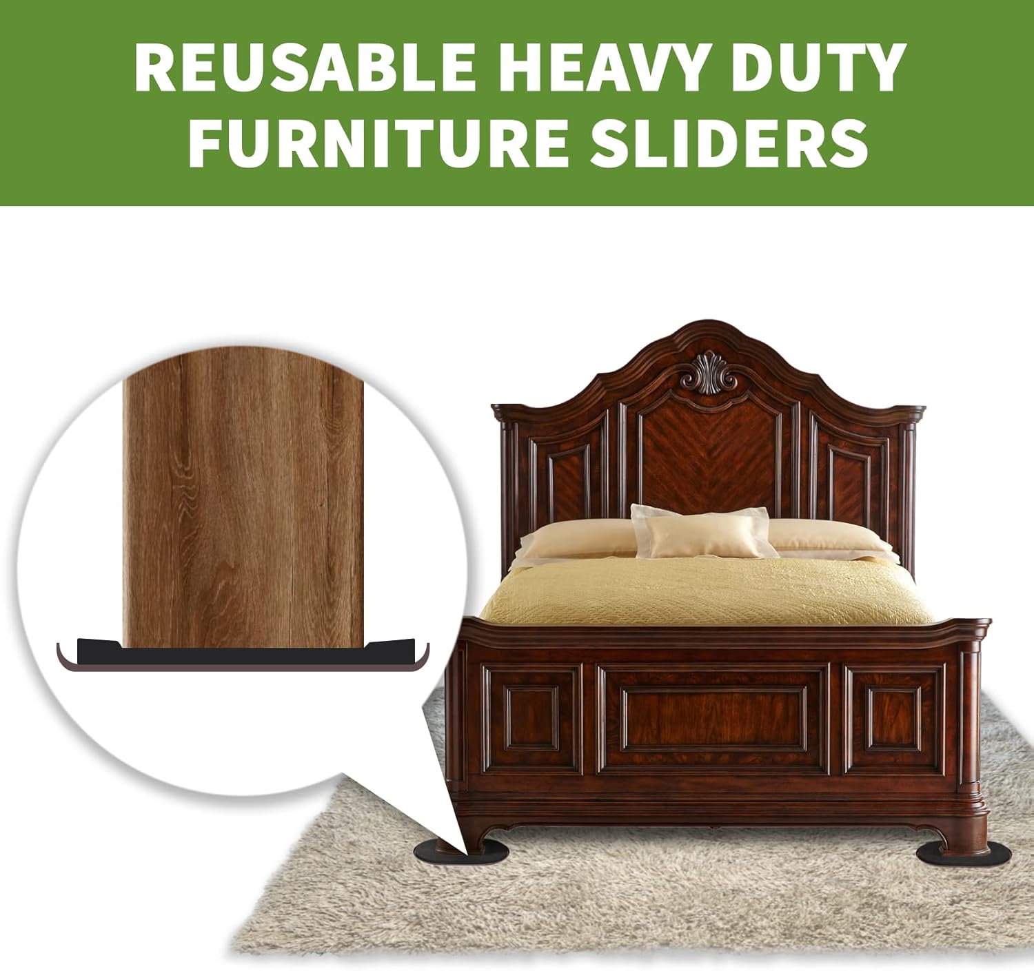 - PREMIUM MATERIAL & REUSABLE PURPOSE – our furniture sliders made of PLASTIC & RUBBER FOAM. There is no glue on the top of hardwood sliders–but the rubber foam securely grips furniture for a long-lasting hold. It is suitable for a variety of furniture, such as refrigerators, sofas, beds, pianos, bulky armoires, tables and more. You’ll be pleasantly surprised at how easy it is to move your heavy furniture perfectly into place no matter what carpet you’re on.