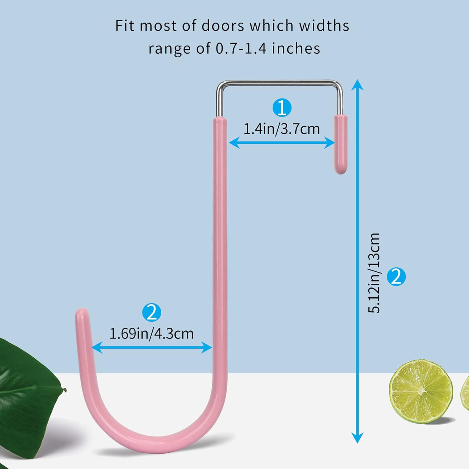 FYY Over The Door Hooks, 4 Pack Door Hangers Hooks with Rubber Prevent Scratches Heavy Duty Organizer Hooks for Living Room, Bathroom, Bedroom Hanging Clothes, Towels, Hats, Coats, Bags Pink