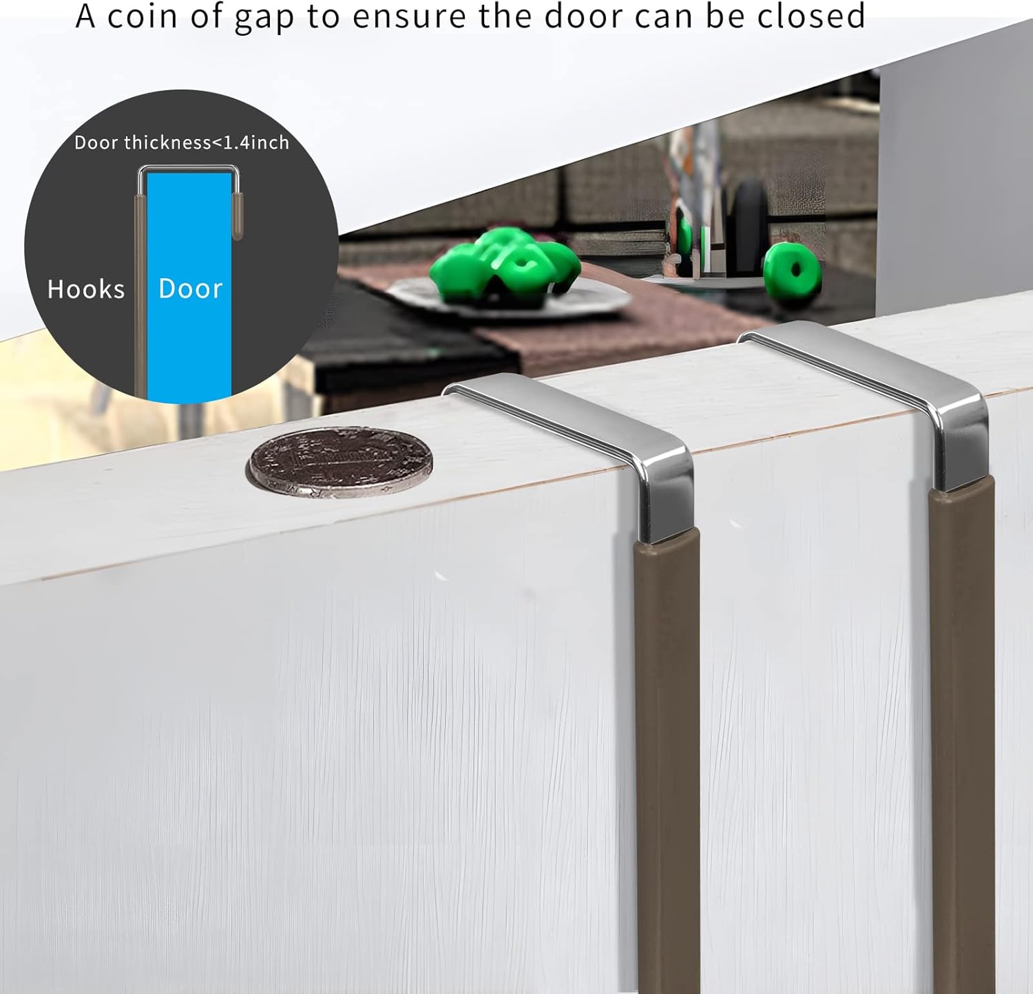 - Wide Application: The over the door hooks can be applied to most door in your house, fit doors of living room, bathroom, shower room, bedroom, kitchen or closets. Prefect for hanging clothes, towels, hats, coats, bags, etc. The hooks convert your doors into a convenient storage space and keep your room organized without messy