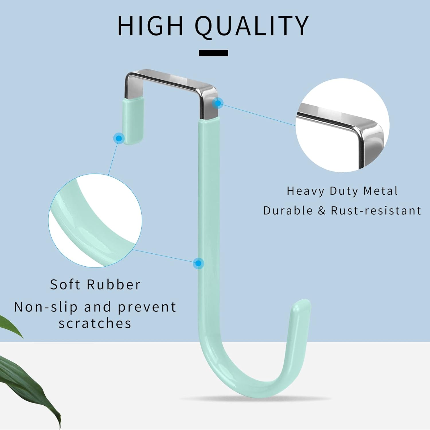 - Soft Rubber: The door organizer hooks are built with soft rubber, non-slip and smooth surface keep the hooks in place without swinging and protect the doors or clothing from scratch