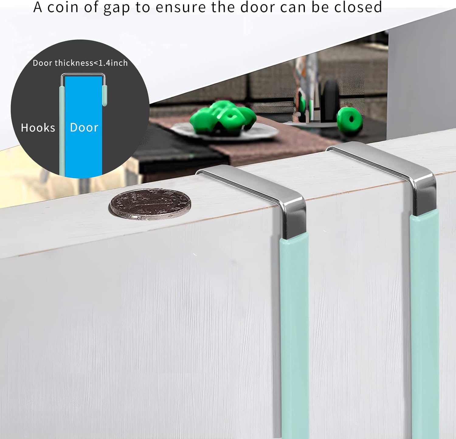 - Wide Application: The over the door hooks can be applied to most door in your house, fit doors of living room, bathroom, shower room, bedroom, kitchen or closets. Prefect for hanging clothes, towels, hats, coats, bags, etc. The hooks convert your doors into a convenient storage space and keep your room organized without messy