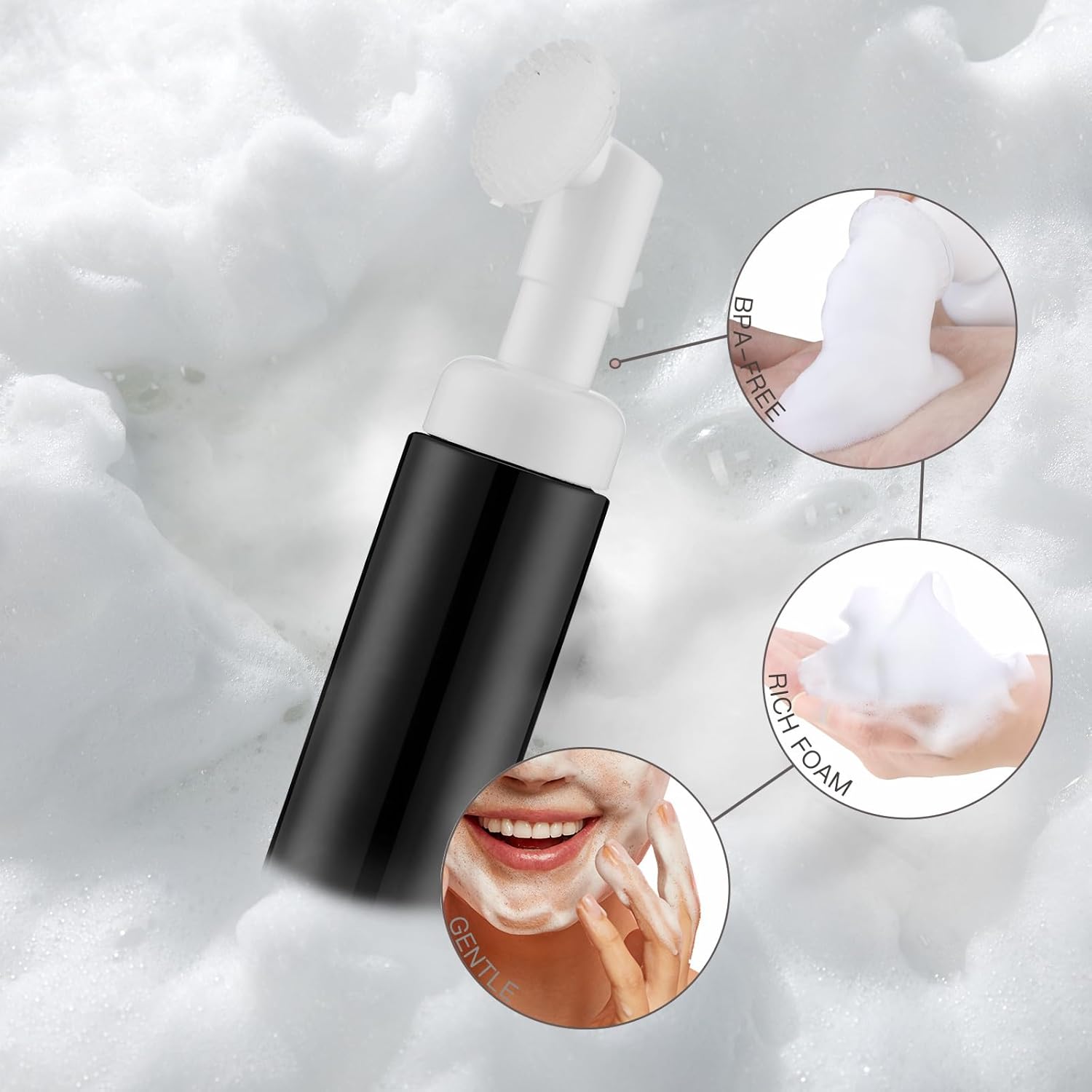 2 OZ Foam Bottle with Brush, Empty Foaming Dispensers to Travel for Soap, Shampoo (3pcs, Black)