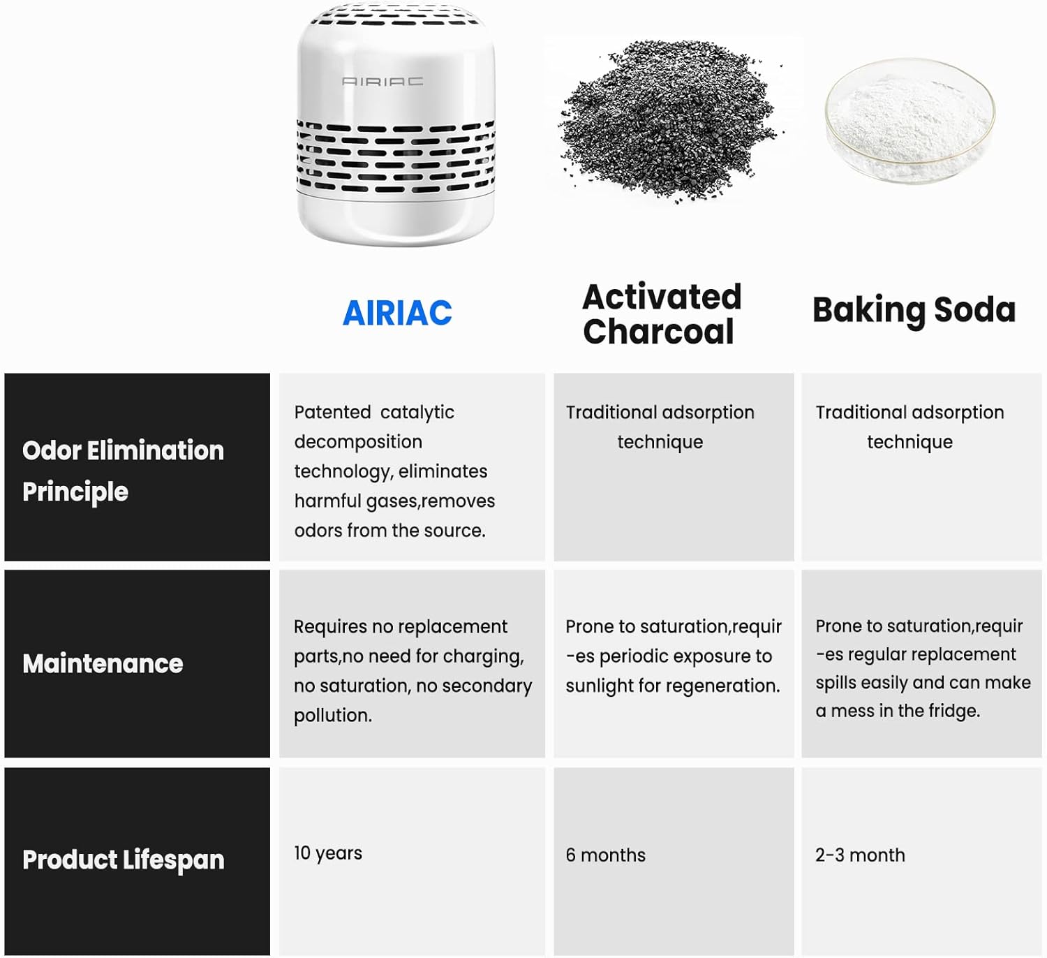 - PORTABLE & VERSATILE KITCHEN GADGET: Our compact and lightweight refrigerator odor eliminator is designed for convenience at home or during travel. It works wonders in various smelly places such as fridges, cars, wardrobe drawers, shoe cabinets, gym bags, and more small spaces.