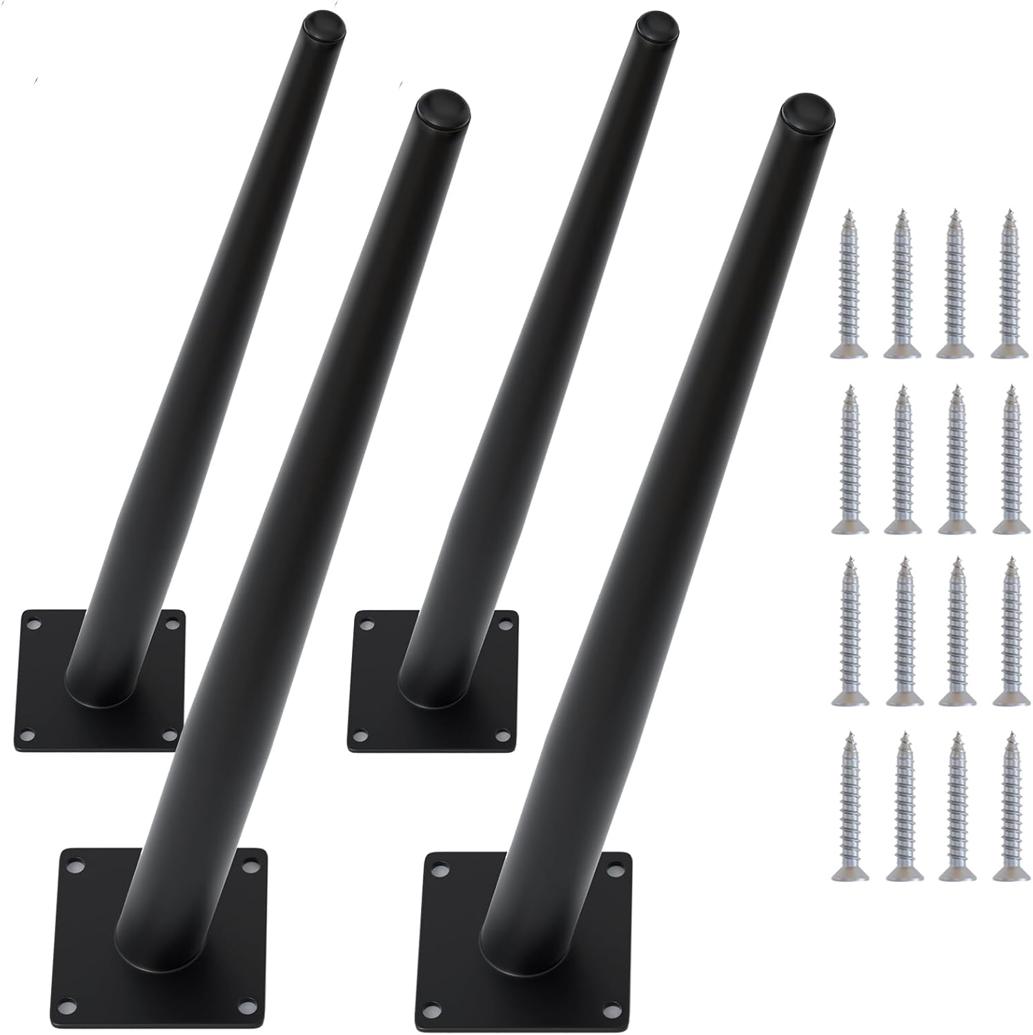 4PCS 16 Inch Matte Black Tapered Angled Legs for Furniture, Metal Mid Century Mordern Feet, Heavy Duty Slanted Stand Legs Kit for Couch, Coffee Table, Desk, Dresser, Sofa, Chair