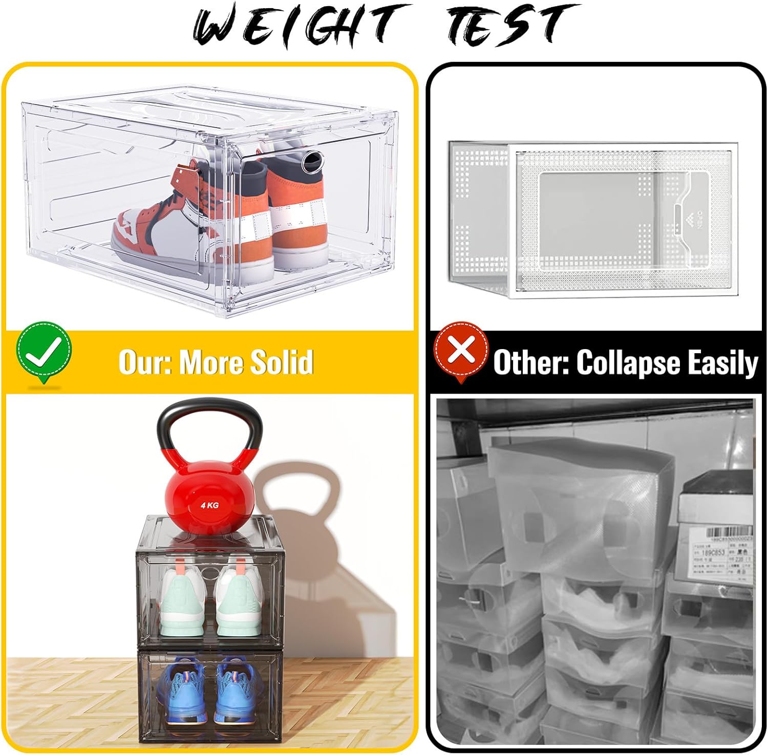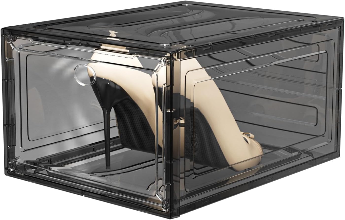 - 【Hard Clear Plastic Transparent】the shoe organiser is made of hard plastic on all six sides. The thick plastic panels ensure durability and the transparent design allows you to instantly recognise the shoes you'll be wearing today.