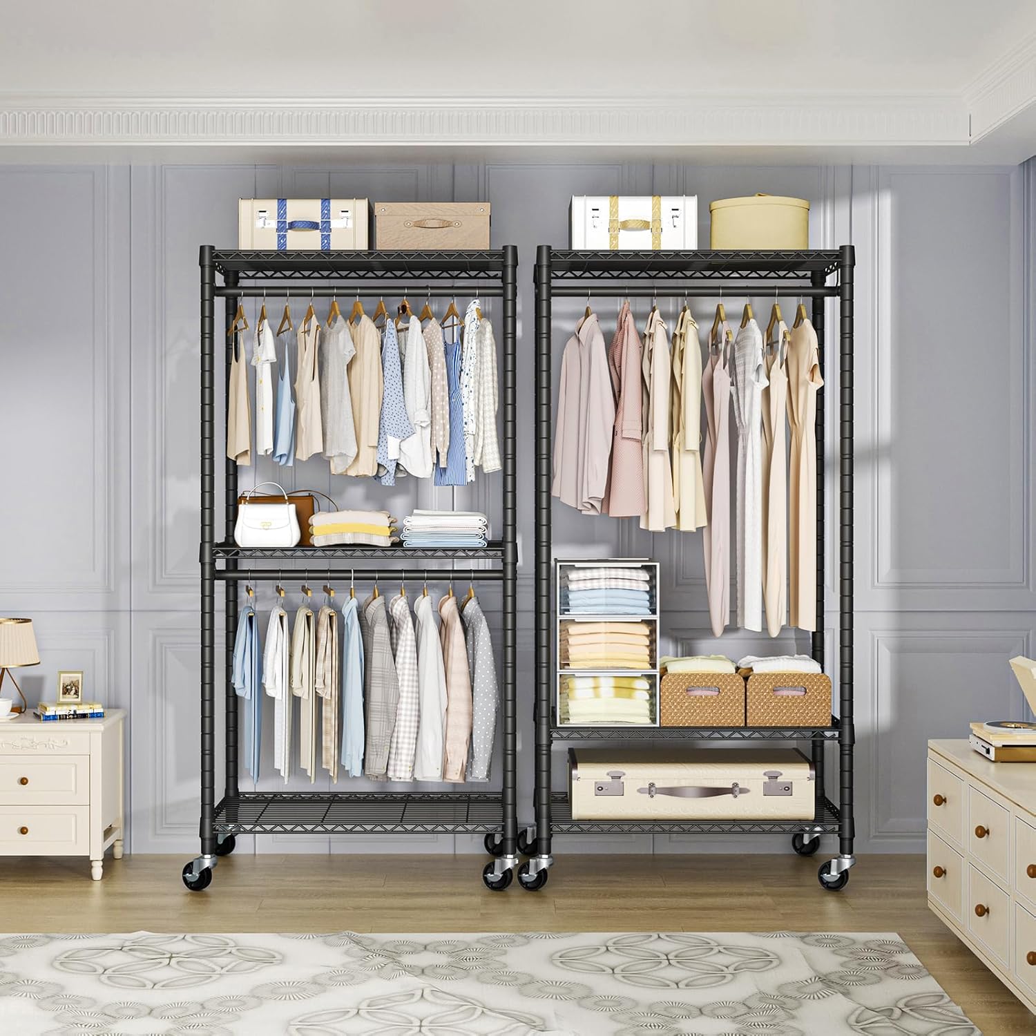 - [Stable & Sturdy]: The quality closet garment rack is made from long-lasting carbon steel, ensuring it can withstand the weight of your clothes