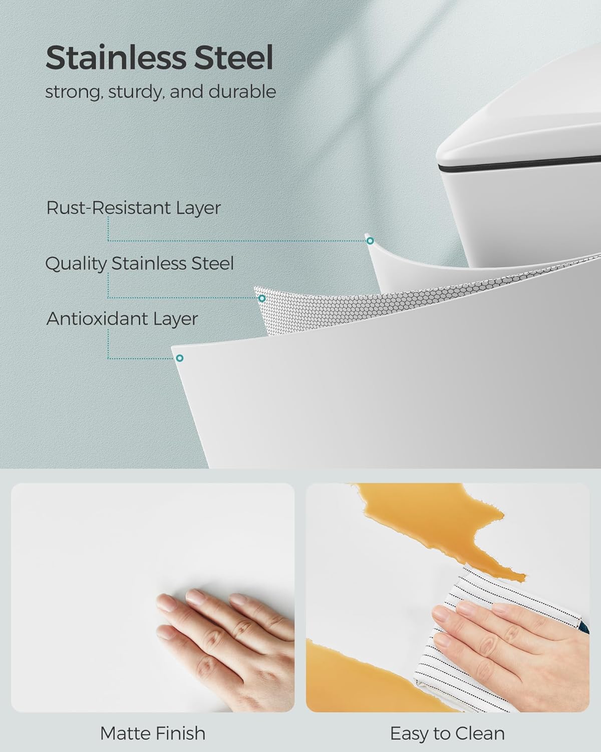 - [Easy Cleaning & Modern Design] This stainless steel trash can is rust-resistant and easy to clean with a damp cloth. This trash bin has a white finish with a sleek modern look that easily matches any decor
