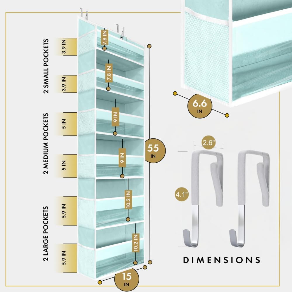 HOMELUX THEORY 2 PC Heavy Duty Over the Door Organizer 55x14x6.7, 6 Large Front & 12 Side Pockets, Hanging Storage Closet Door Organizer for Bedroom, Bathroom and Baby Nursery Storage (Baby Blue)