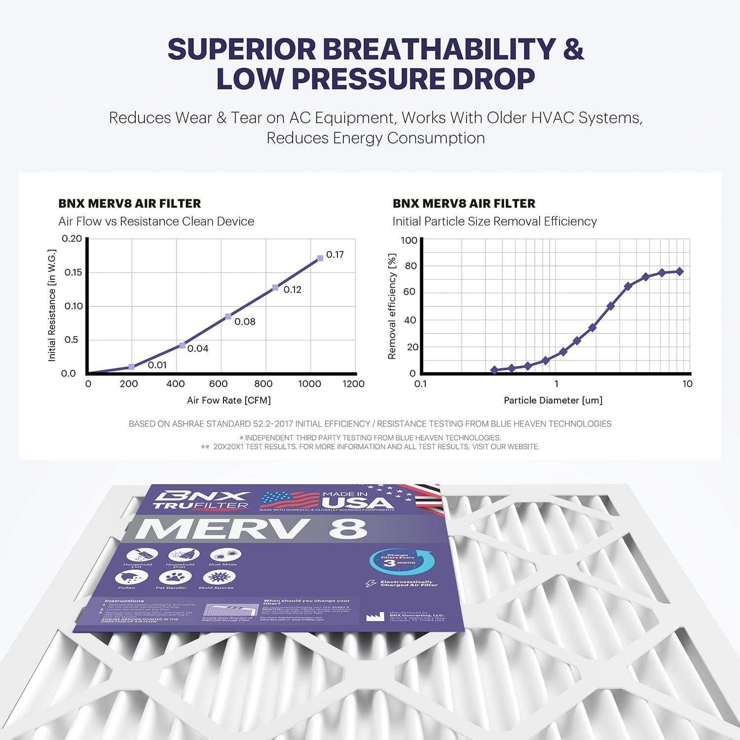 - SUPERIOR PERFORMANCE - The BNX MERV 11 100% synthetic electrostatically charged air filter media outperforms standard fiberglass filters and adopts the latest in electrostatic filtration technology to allow for industry leading superior low air flow resistance while maintaining the highest grade level of filtration.