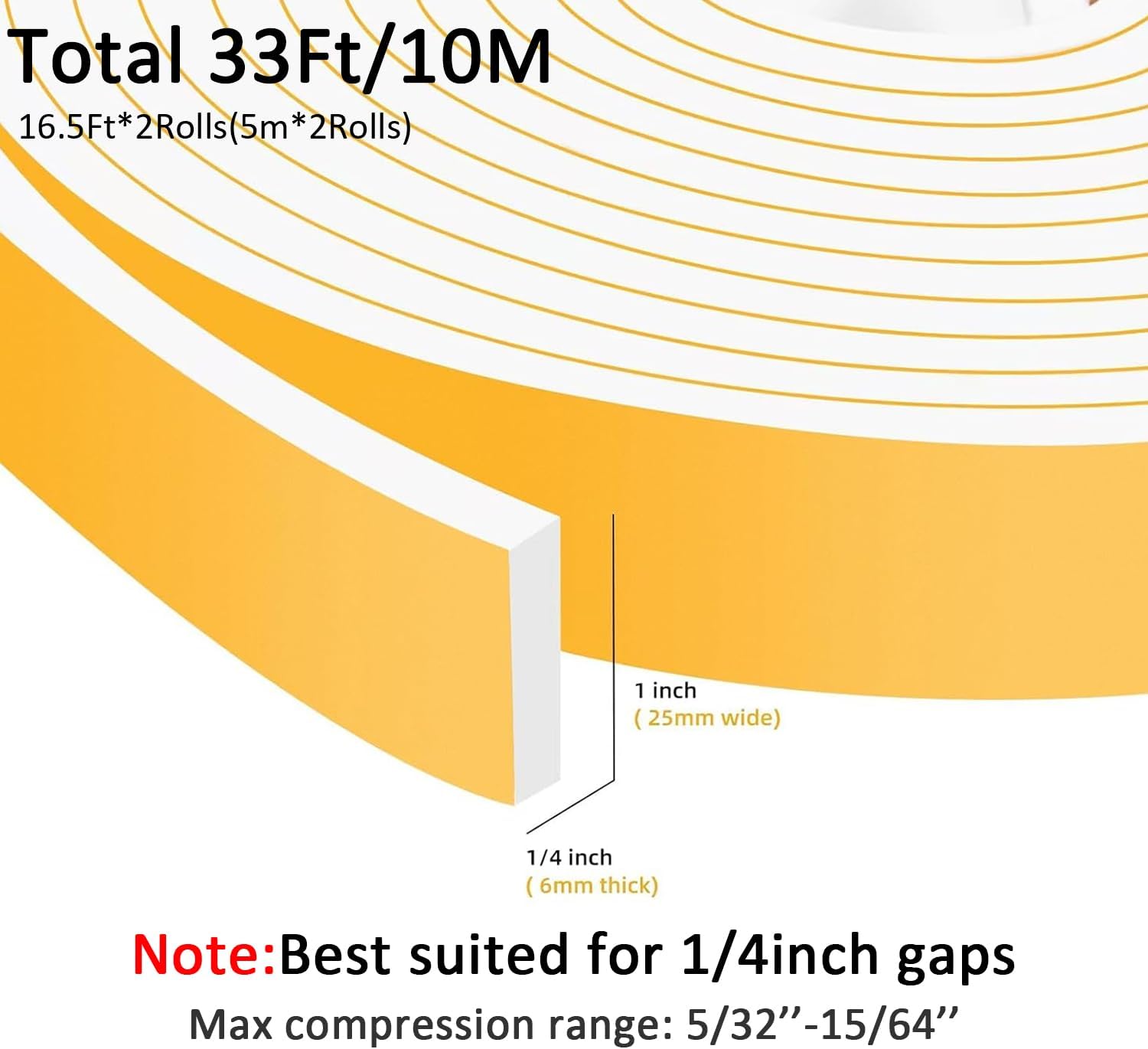 - 🟠SAVE ON ENERGY BILLS- Sealing gaps with this weather insulation strip helps to reduce energy consumption by keeping your room cool in summer and warm in winter, thus reducing electricity bills. You get two rolls of doors windows AC insulation foam seal strip with 33 ft in total in each package, providing enough material for multiple seals. And it's easy to install and apply without extra tools, just simply peel and stick it on for a tight seal. It's a hassle-free and money-saving solution!