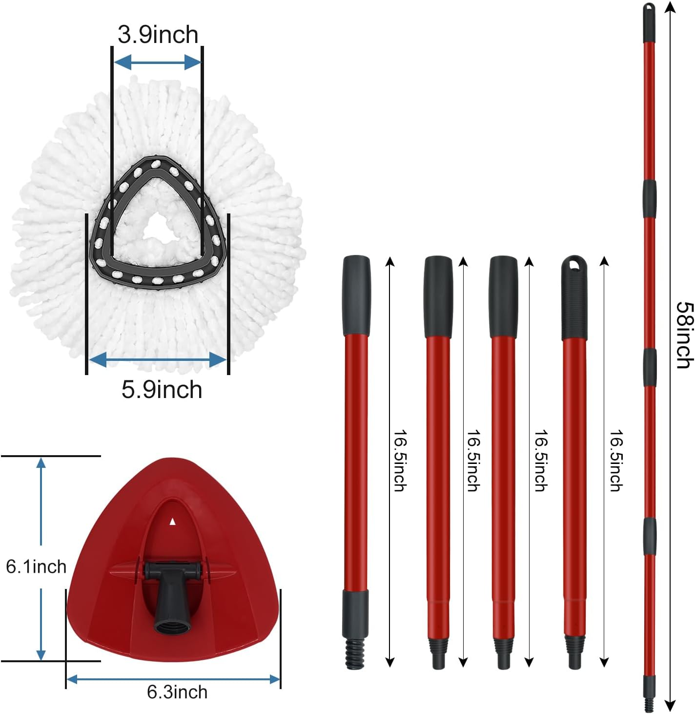 - 【Upgraded Durable Iron Mop Handle】- Adjustable Spin mop handle replacement is made with Sturdy Iron material,Compare to normal stainless mop handle,the iron mop stick is more solid that Never to Break and can lasting long time to use. Besides,the surface of the mop stick with baked Red paint process technology to ensure Anti-slip to hold when clean. With standard screw,this mop handle can also work with most of other brand’s spin mop & brooms.