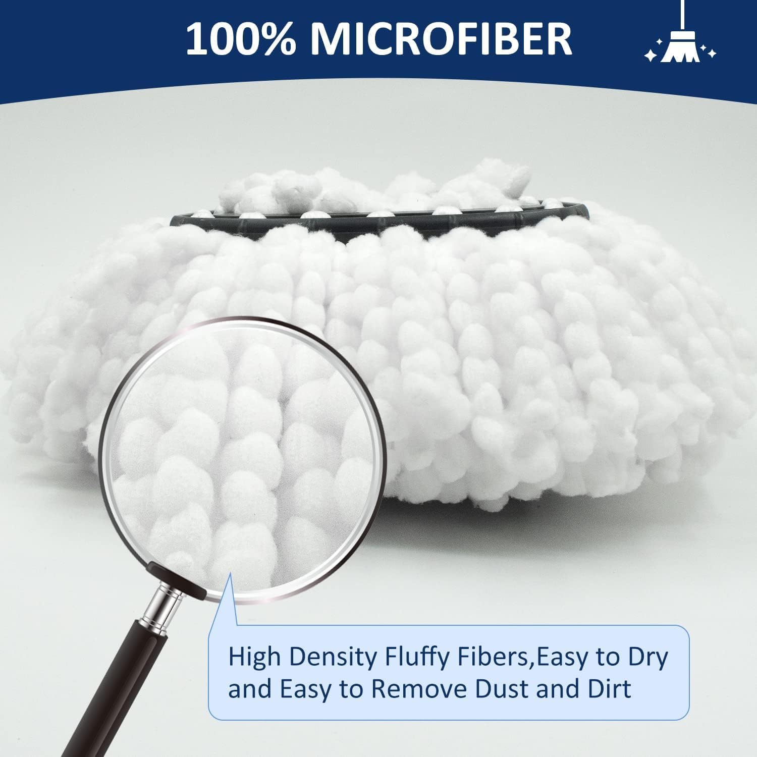 - 【Quality Microfiber Mop Heads Refills】- Includes 2 packs mop heads replacements which made of 100% super absorbent microfiber . Effortlessly clean dirt and dust from hardwood, ceramic tile, laminate, marble, and glass.Durable and machine washable.