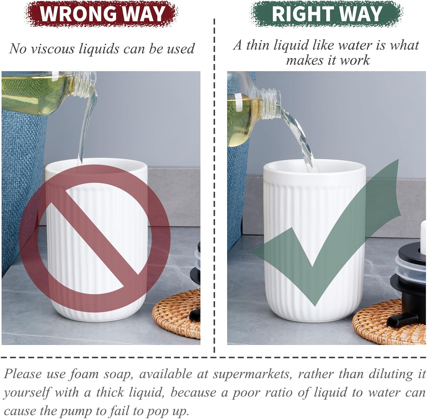 - Reusable Dispenser: The foam dispenser is made of premium ceramic, durable & lead-free. Thick matte porcelain surface, which is more comfortable. It' s safe to use and easy to clean