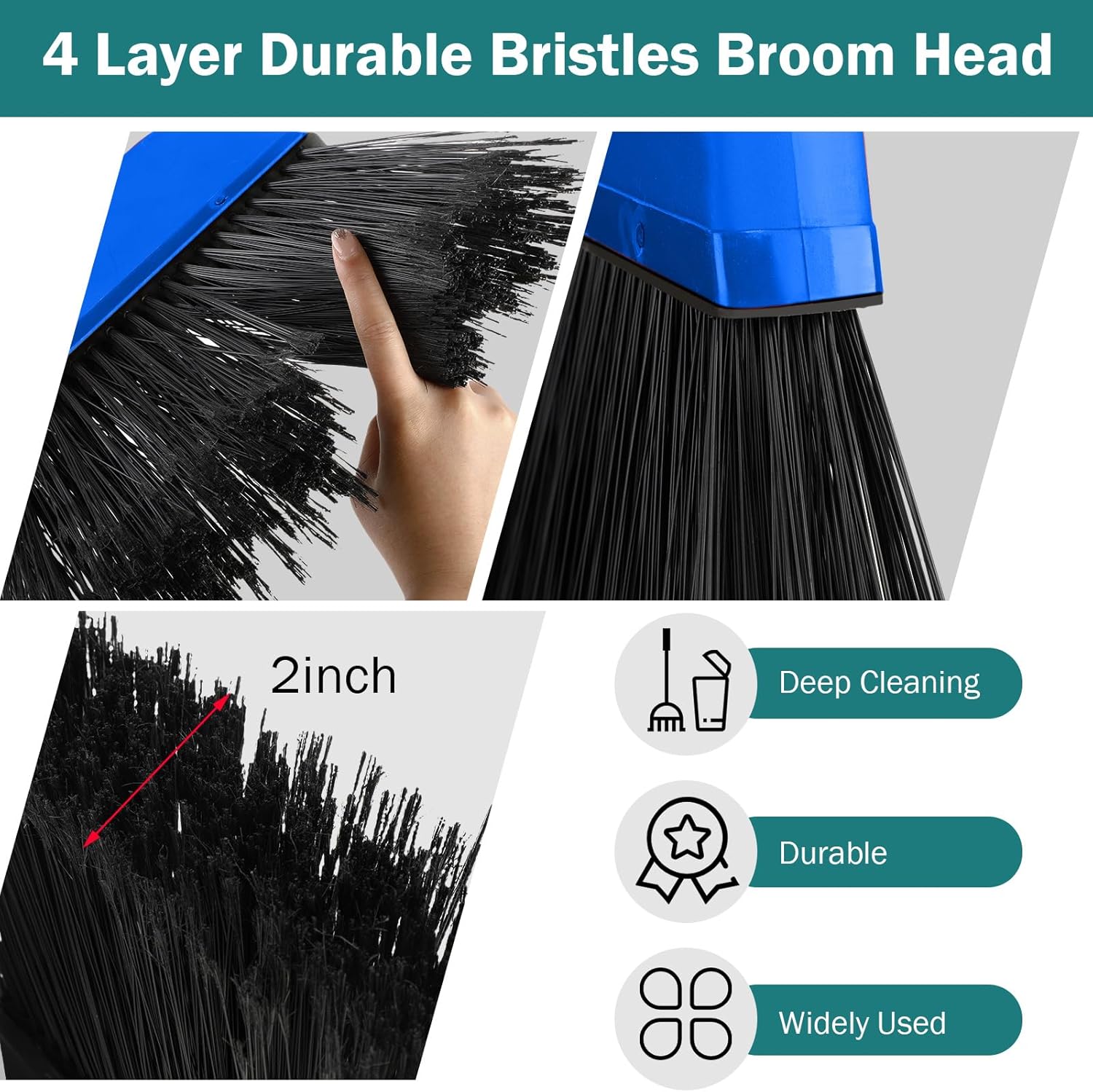 - Long Handle: this commercial broom measures approx. 54 inches in whole length, and the handle is about 47 inches long so that you won't bend your back and the long broomstick will also allow you to reach the corner and spot to keep your space spotless