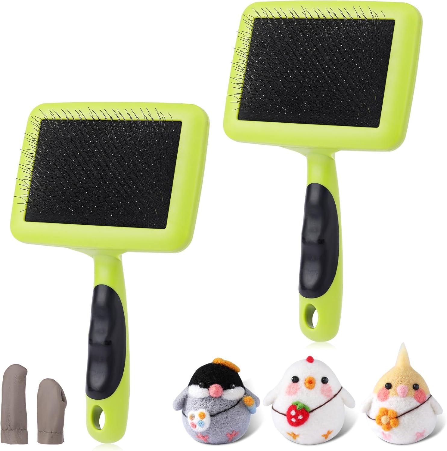 - 2 Pcs Plastic Wool Carders: Includes 2 large plastic wool carders and a pair of finger cots. Perfect for fluffing wool, blending colors for wool needle felting projects, and gentle pet grooming. An essential felting supplies tool for needle felting and pet gromming