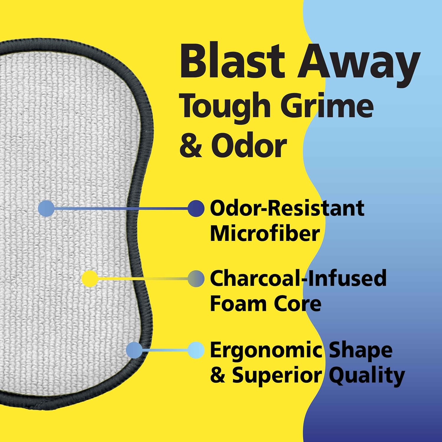 Fresh Scrub-N-Wipe Pad by Tuff-Scrub, 6-Pack, Antimicrobial & Charcoal Foam for Odor Control, Microfiber, Multi-Surface, Non-Scratch, Dual-Sided, Machine Washable, Kitchen Sponge (Small)