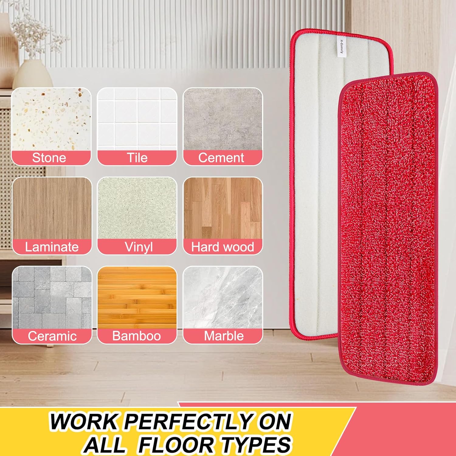 - Superfine Microfiber - Our spray mop heads adopt the high quality microfiber whose decontamination ability is further improved, fully absorb pet fur, hair, debris, dust, oil or other stubborn stain, durable and reusable.