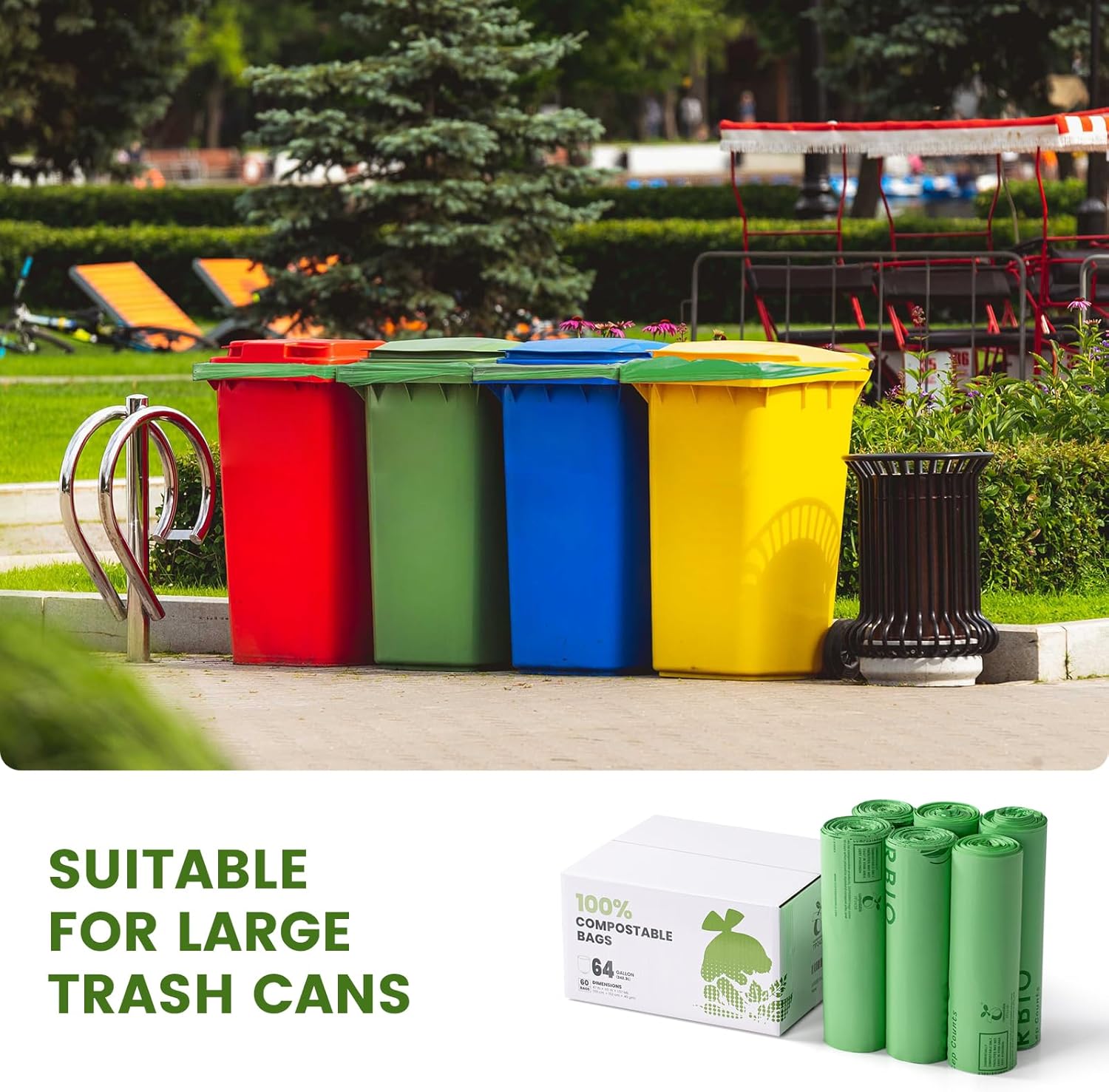 - Product Information: SUPERBIO compostable lawn&leaf bags, 64 gallon bulk package, (242.3L) 47 in x 60 in x 1.57 mil, 60 bags