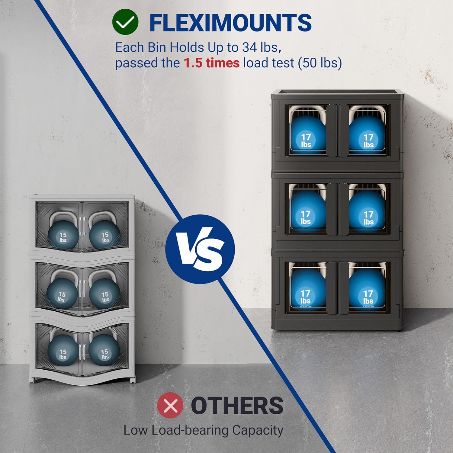 FLEXIMOUNTS 110 QT Stackable Storage Bins With Lids, Collapsible Plastic Storage Bins With Doors and Built-in Wheels For Home Dorm Closet Organizers and Storage, 3 Pack Cubes, Black