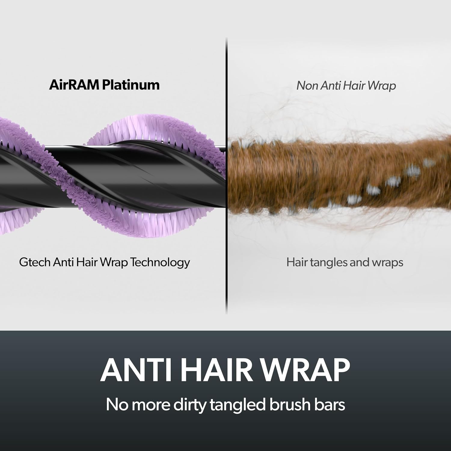 Gtech AirRAM Platinum Cordless Vacuum Cleaner - Includes Anti-Hair Wrap Brush Bar - Perfect for Carpet and Hardwood Floors - Rechargeable 22v Li-ion Battery - Lightweight (7 lbs.)