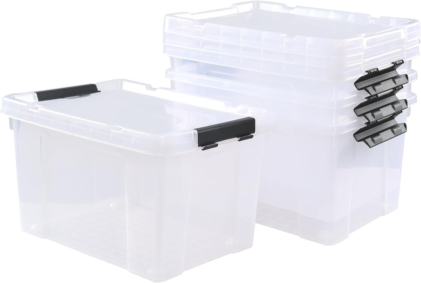 4 Pack 22 L Clear Plastic Storage Box with Wheels, Latch Storage Bin with Lid
