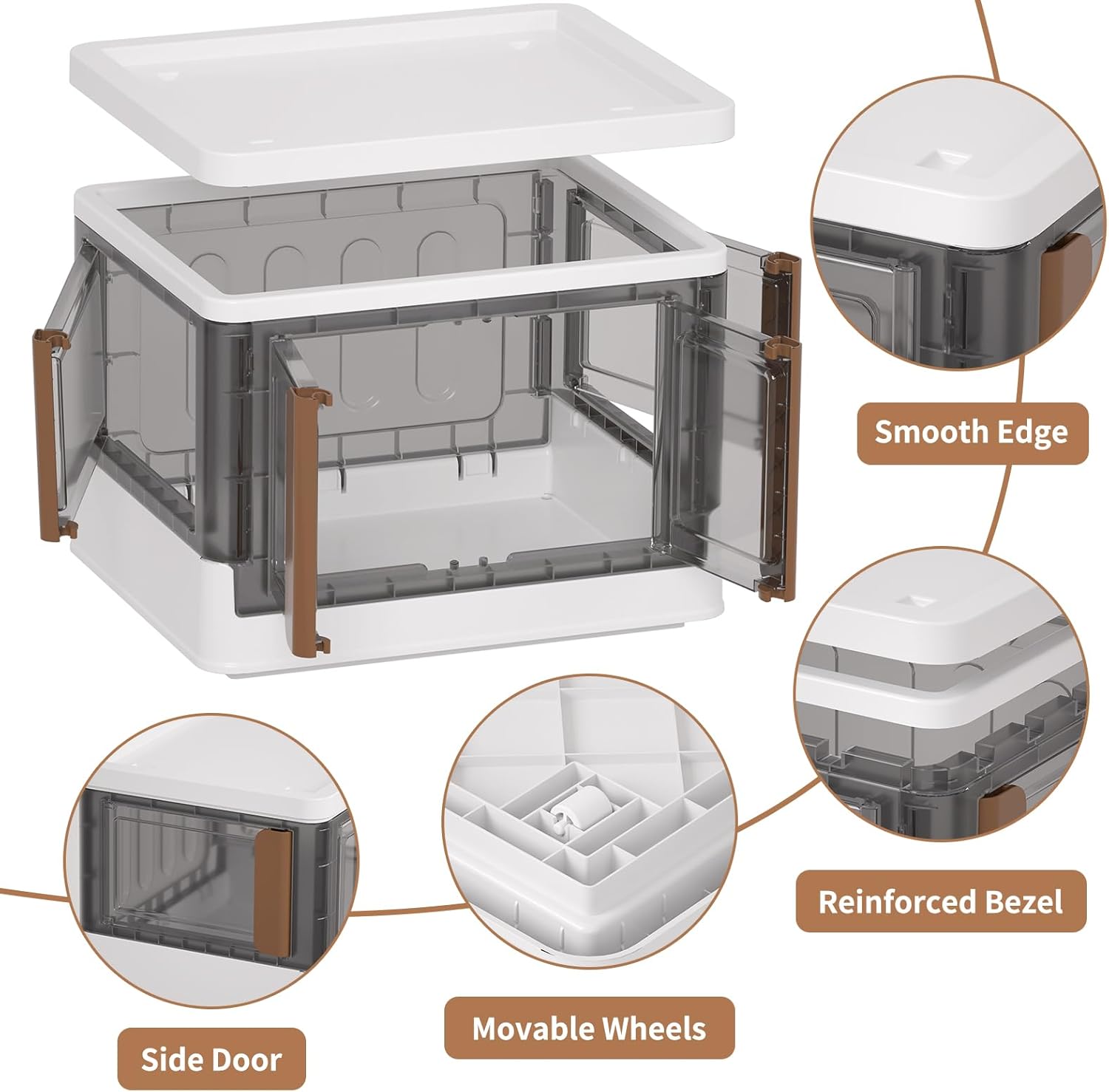 HAIXIN 4 Doors Opening Shelf Organizer, Foldable Closet Organizers and Storage, 6.86 Gal Cube Storage Bin with Wheels, Stackable Storage Box for Blanket Storage and Snack Organizers, 2 Pack