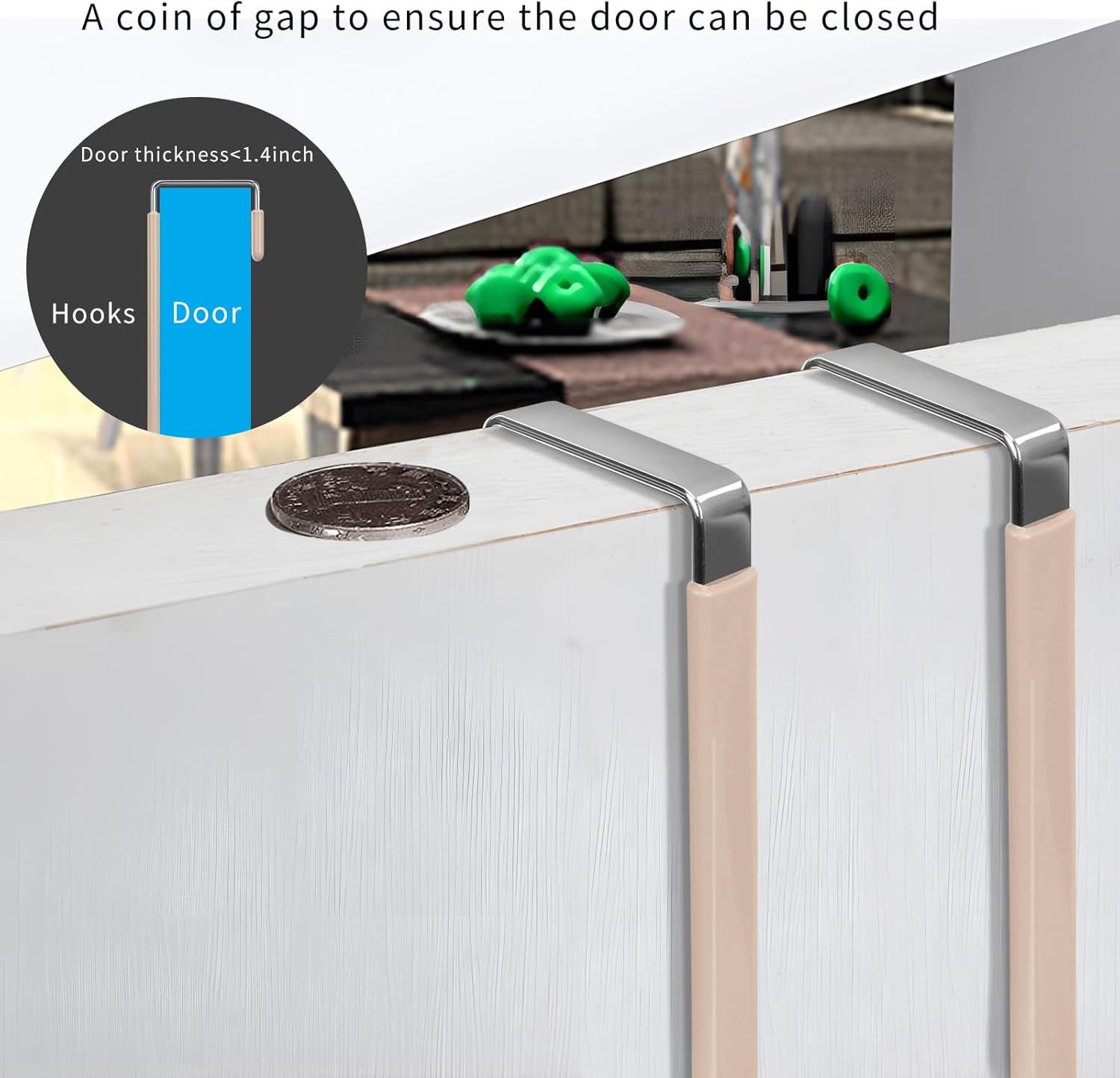 - Wide Application: The over the door hooks can be applied to most door in your house, fit doors of living room, bathroom, shower room, bedroom, kitchen or closets. Prefect for hanging clothes, towels, hats, coats, bags, etc. The hooks convert your doors into a convenient storage space and keep your room organized without messy
