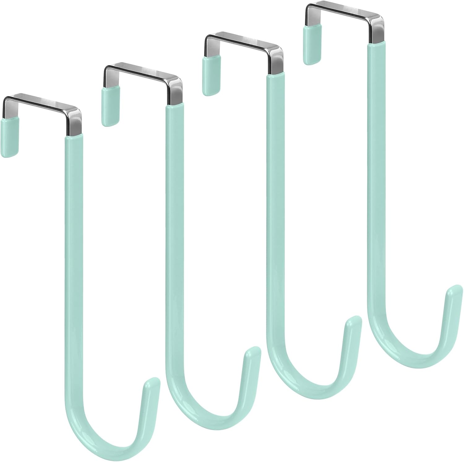 FYY Over The Door Hooks, 4 Pack Upgraded Long Door Hangers Hooks with Rubber Prevent Scratches Heavy Duty Organizer Hooks for Hanging Clothes, Towels, Hats, Coats, Bags LightGreen