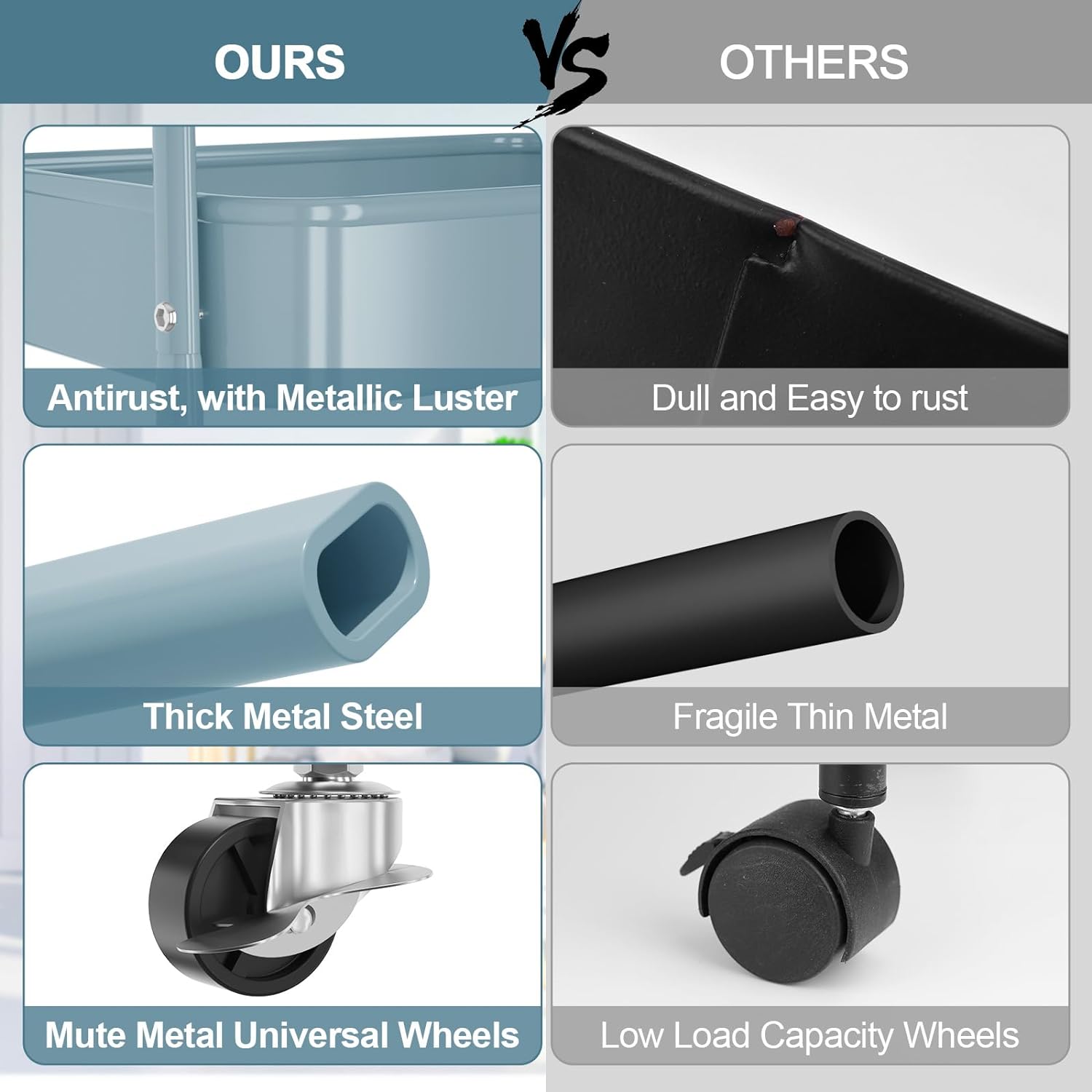 - Multifunctional Rolling Cart: Our utility cart serves multi purposes, suitable for virtually any application and any room. It can be snack cart, tool cart, service cart, book cart, or organization rack in your kitchen, bedroom, laundry room, bathroom, living room, office, garage, and workshop, etc.