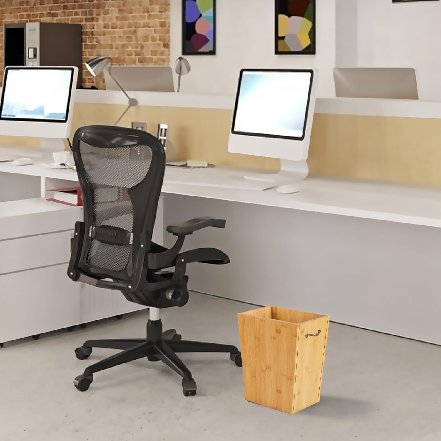 SEHERTIWY Wood Trash Can, Farmhouse Wastebasket Bin for Bathroom, Office, Bedroom, Living Room, Small Square Rustic Garbage Container with Metal Handle (Wood-Black-Handle)