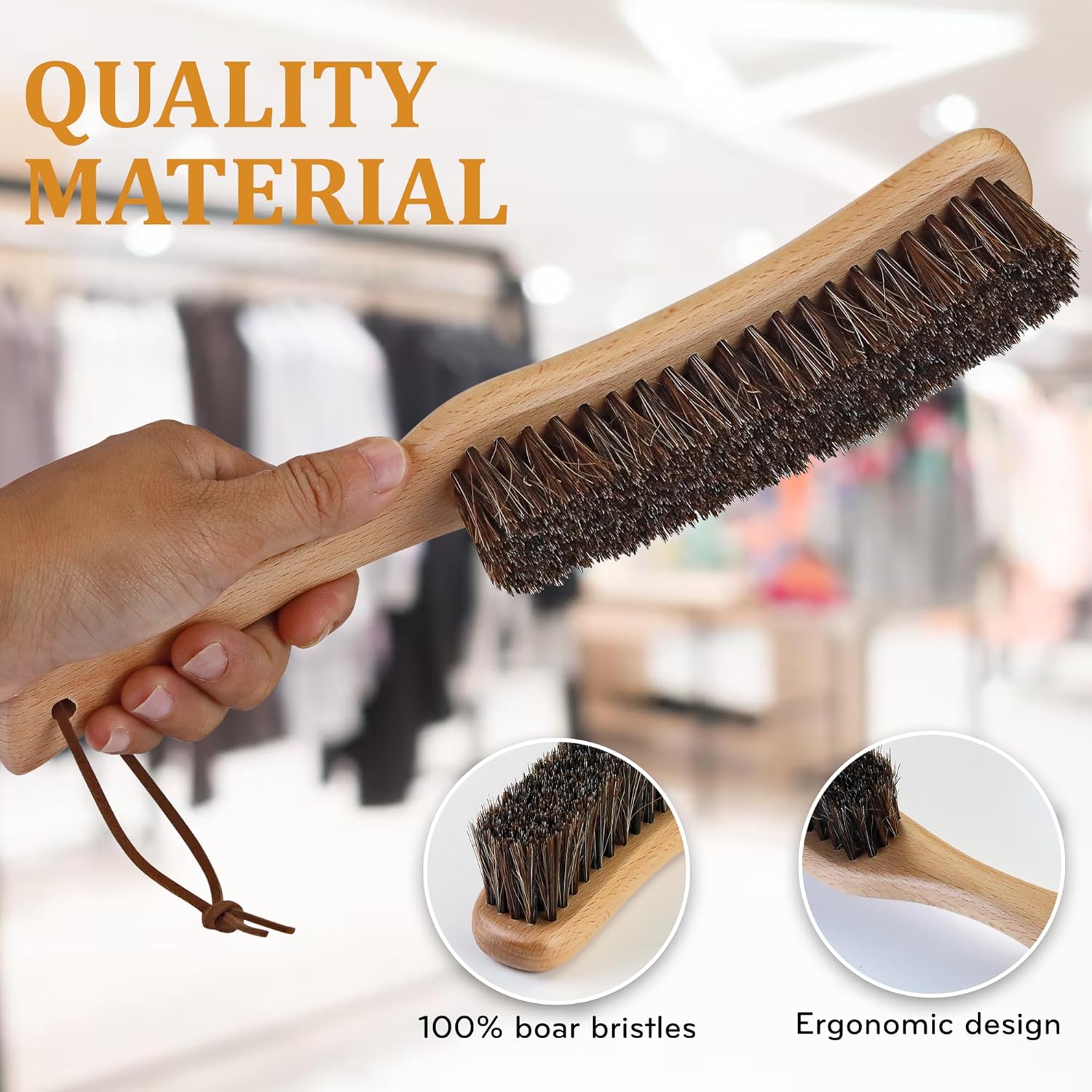 Lint Brush for Clothes with 100% Soft Horse Hair Bristle, Large Beech Wood Handle, Lint Remover for Hat, Pet Hair, Suits, Cashmere, Wool, Velvet, Suede, Shoe