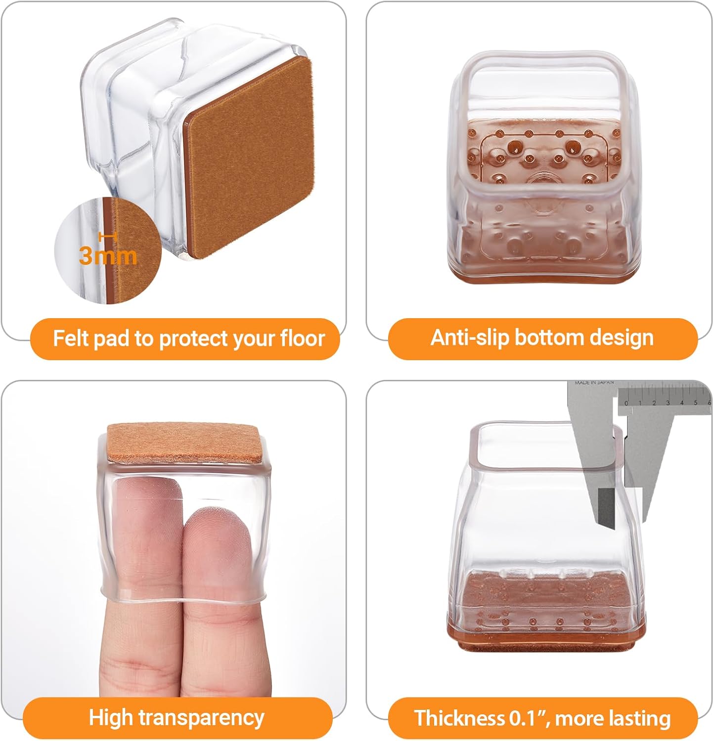 - APPLICABLE SHAPES AND SIZES: Our chair leg floor protectors only fit wooden square chair legs. Compared with the round chair leg caps, square chair leg floor protector fits the square chair leg better. We have tow sizes chair leg protectors for hardwood floors.Please measure the size of your furniture feet before buying.The L size chair leg floor protectors square is suitable for square leg with side length 1-3/10"" to 1-3/5""(33-40mm), irregular leg with perimeter 5-1/5"" to 6-3/10""(132-160mm)