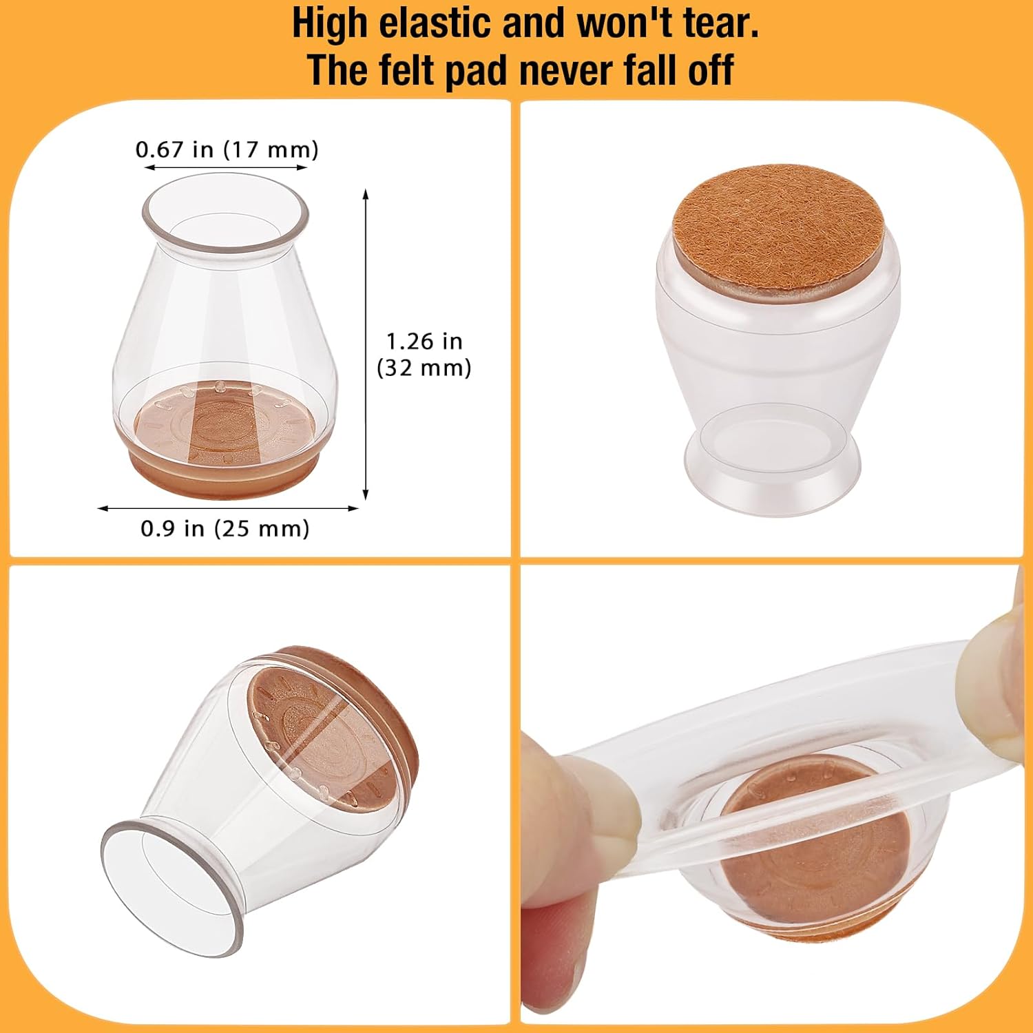 - 【The Felt Pad Never Fall Off】: Latest upgrade! Our chair leg protectors for hardwood floors do not use gel. The bottom felt pad and the silicone chair leg floor protectors are integrated with a high-pressure machine to ensure that they will never fall off. Ordinary felt furniture pads use gel, which is not strong enough, the felt pads are easily sliding off and stain your floor.
