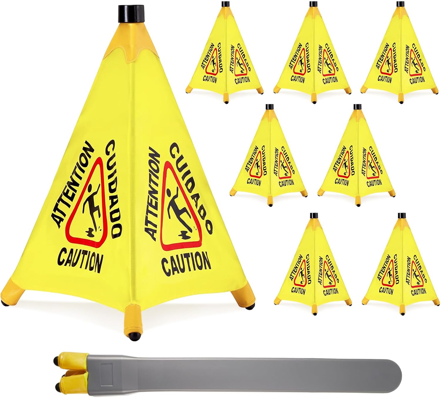 8 Pcs Pop up Wet Floor Sign with Storage Tube 20 Inch Wet Safety Signs Commercial Caution Safety Cone Pop up Caution Sign for Commercial Stores Grocery Restaurant Restroom Office Use