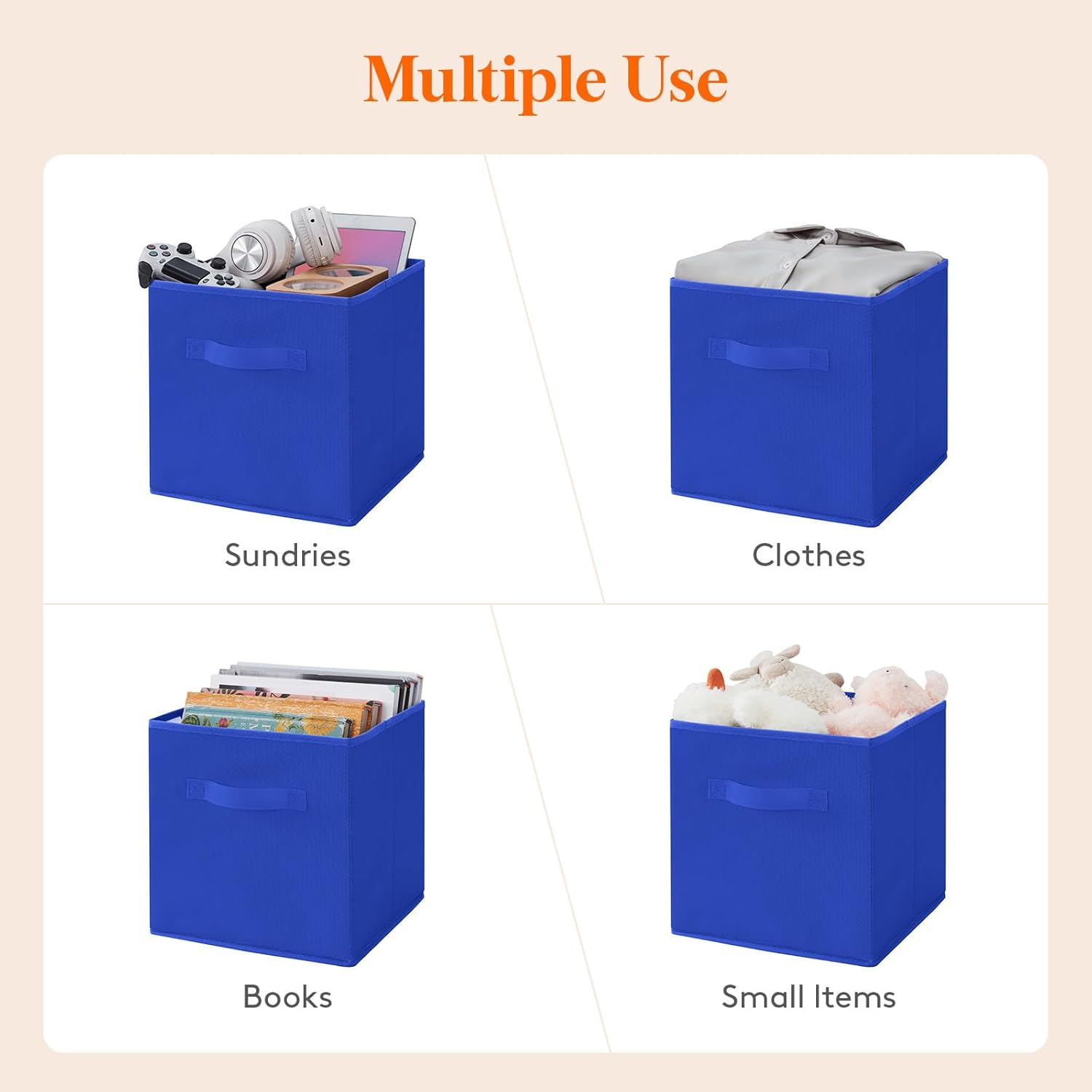 Lifewit Collapsible Fabric Storage Cubes Bins Set 11 Inch, Foldable Cubby Organizers Boxes, 6 Pack Organizing Baskets for Shelf, Closet, Utility Room, Storage Room Blue
