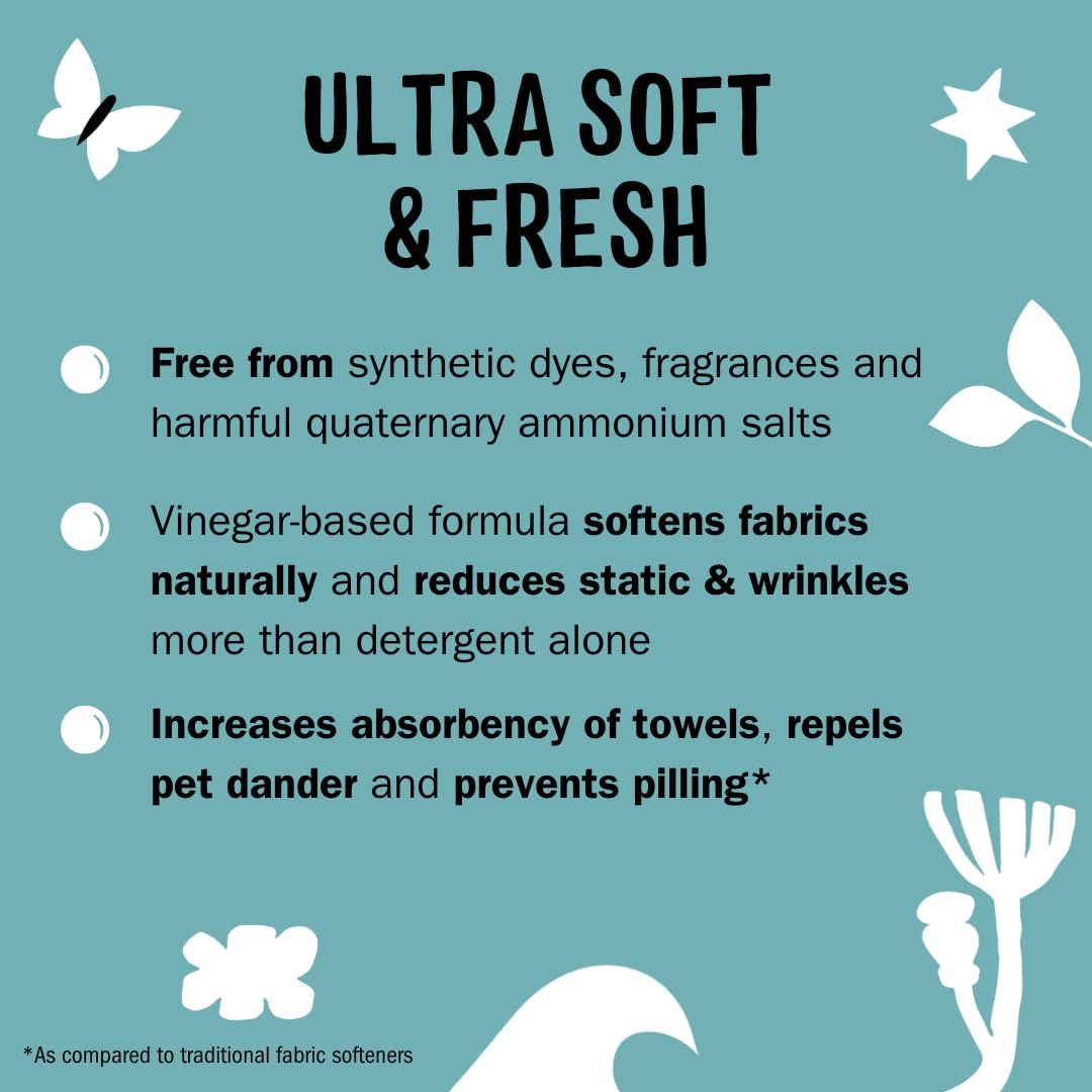 - SOFT, STATIC FREE CLOTHES: Unlike traditional fabric softeners that can deposit residues on clothes, Molly’s Suds vinegar-powered Fabric Softener uses simple ingredients (no harmful quaternary ammonium compounds!) to leave clothes feeling fresh, cozy, and comfy. Ideal for sensitive skin, the planet, and all washing machines. Our clean formula reduces static and wrinkles more than detergent alone, so you and your family can look and feel your best.