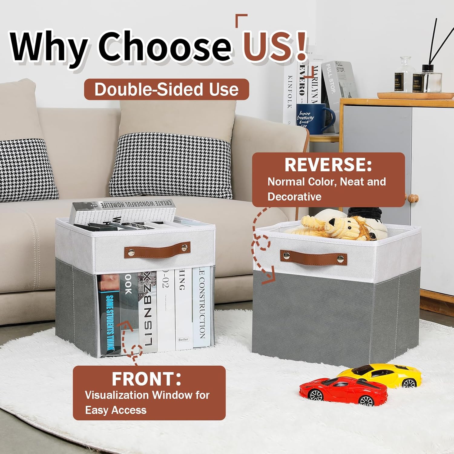 HNZIGE 11x11 Cube Storage Bins for Cube Organizer, Clear Fabric Storage Cubes for Storage Shelves, Collapsible Decorative Storage Bins for Clothes Closet Toys Cubby Storage Bin(White Gray 6 PCS